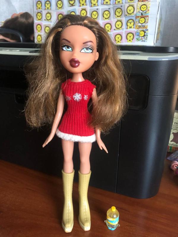 кукла Bratz Ясмин На фотографии изображена кукла Bratz , а именно персонаж Ясмин. Она одета в красный зимний наряд и входит в серию Bratz Campfire, оригинал, высота 26 см, дефект на каблуке сапога смотрите фото