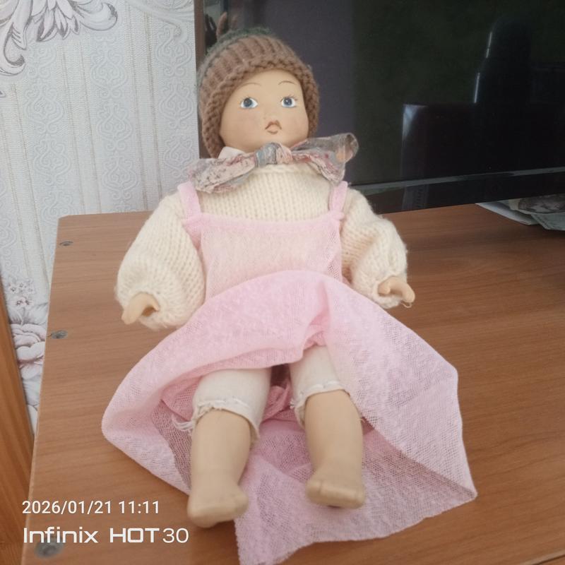 Дуже гарна лялька для колекції або як подарунок . Зроблена вручну. Привезли з Німеччини , у ідеальному стані . Вироблена з кераміки або фаянсу - голівка , ручки та ніжки . В'язаний светр та шапочка . Можна як подарунок для дитини .Висота 24 см