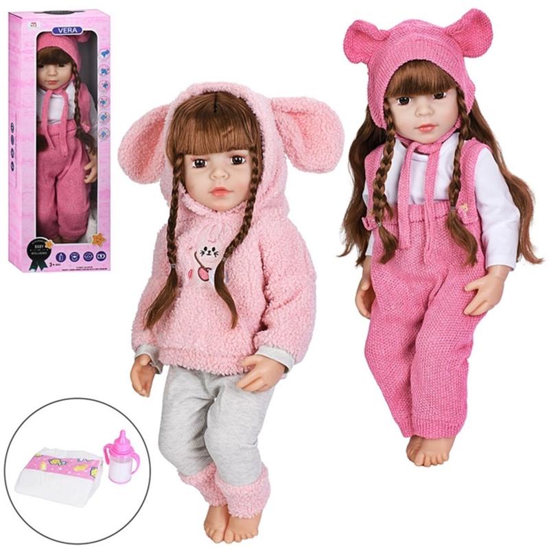 Лялька Reborn TDQM-28-35B - перед замовленням, будь ласка, уточнюйте наявність (оптовий склад). Це реалістична іграшка висотою 57 см з довгим волоссям, представлена у двох видах, орієнтована на дітей віком від 3 років. В комплект входять аксесуари, такі як памперс та пляшечка. Пупс поставляється у коробці розміром 59x20x13.5 см