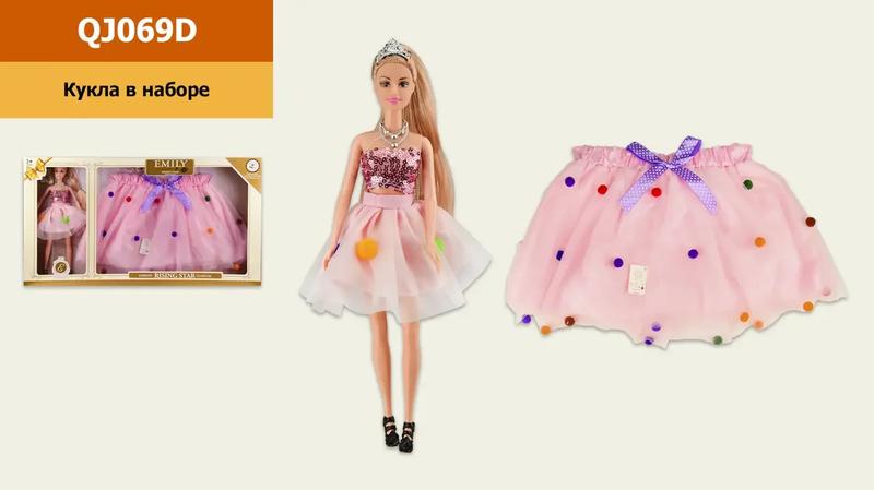 Лялька "Emily", зі спідницею для дівчинки, в коробці 60*6.5*33см, розмір іграшки 29см, QJ069D Лялька - найкращий подарунок для будь-якої дівчинки. З ляльками дитина зможе вигадувати ігрові сюжети, розвивати свою фантазію та творчий потенціал. Лялькою добре грати як з подружкою так і самостійно, наприклад, на прогулянці або в дорозі. Розмір ляльки 29см. Розмір спідниці універсальний, пояс на резинці. Довжина спідниці: 25 см. Увага. Виробник залишає за собою право змінювати комплектацію, колірну гаму та характеристики товару без попереднього повідомлення. .
