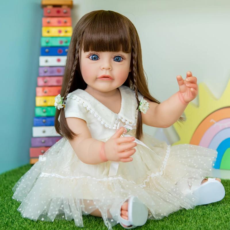 Рост: 55 см. Вес: 1,3 кг Глазки акриловые, голубые или карие. Ресницы густые, проклеены Ручная роспись, прекрасная прорисовка. Переданы анатомические особенности ребенка - складочки и перевязочки. Верхний слой кожи создает полное ощущение прикосновения к ребенку. Пупс из высококачественного немецкого винил-силикона, есть сертификат качества Волосы каштановые, густые, проклеены на сетке В комплекте с куклой: - Одежда - Бутылочка - Магнитная соска - Свидетельство о рождении