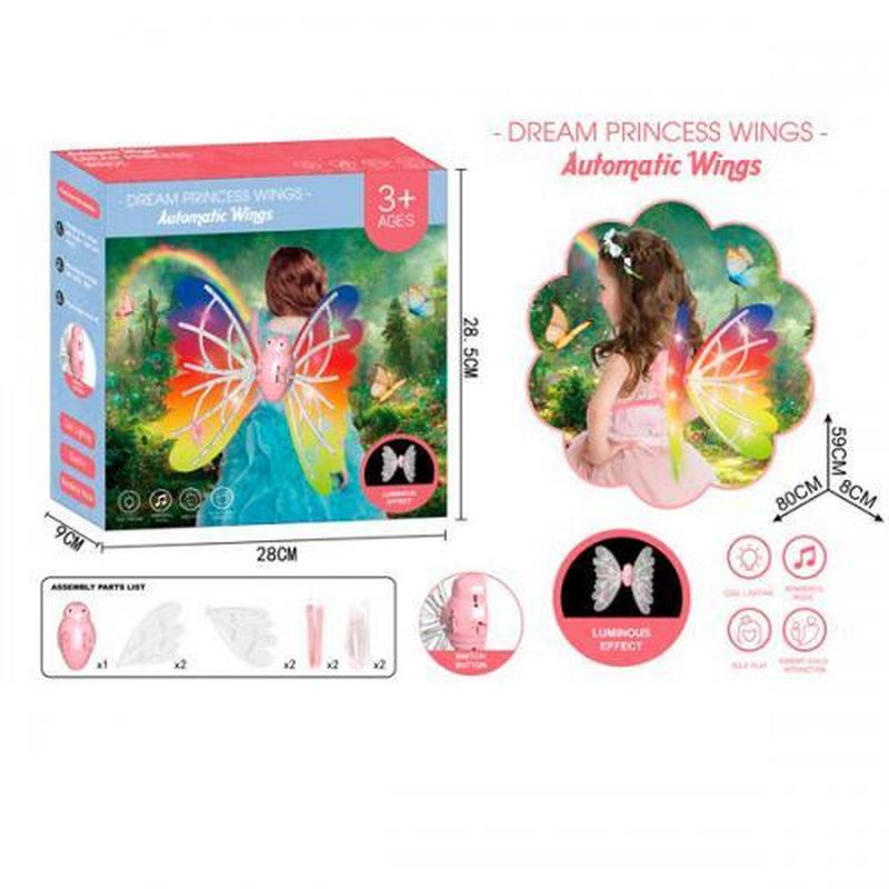 Набір аксесуарів "Карнавальні крила". Є музичний супровід, підсвічування. Крильця метелика, рухливі, розбірні. Живлення - батарейки. Упаковка - коробка. Розмір - 28х9х28,5 см.
