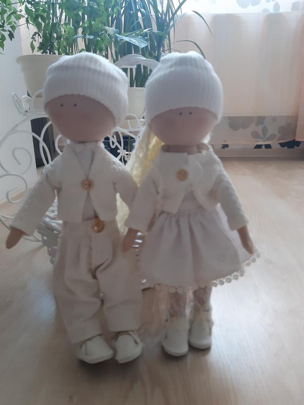 Весільний декор,ляльки для закоханих,мила парочка,виконана в білому кольорі.Висота 34 см,туфельки, колготки, гудзики..Все дуже розкішно.