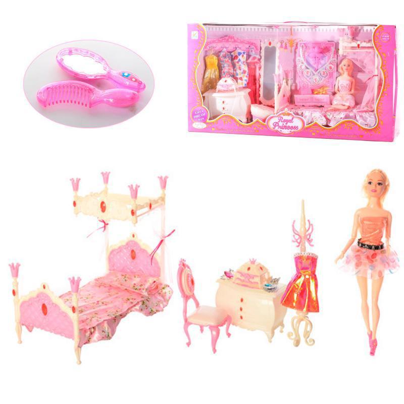 Великолепная шарнирная куколка обитает в милой и стильной спальне. Здесь есть королевская кровать с балдахином, элегантное трюмо, пуфик и зеркало во весь рост. Кроме того, в набор входят платья и яркие аксессуары! • Кукла: 29 см; • Кровать: 32 см; • 4 платья