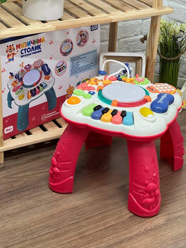 📠СТОЛИК ІНТЕРАКТИВНИЙ📲 Артикул: 9T1499 Ціна 950грн ✍️Опис: Захоплююча іграшка, яка сприяє активному розвитку малюка, починаючи з раннього віку👶 На панелі розташовано безліч ігрових елементів, які розвиватимуть: дрібну моторику рук, пам'ять, увагу та сенсорне сприйняття. - 5 різнокольорових клавіш піаніно🎹 - пальчиковий лабіринт🧩 - центральна кнопка при натисканні активує мерехтливе підсвічування та звуки ударних інструментів🥁 - кулька, що обертається, відтворює задерикуватий дитячий сміх😆 - бочечка підсвічується та активує потішні звуки🔉 - кнопки із музичними інструментами вмикають веселі пісеньки українською мовою🎙️🇺🇦 - серце при натисканні активує повчальні казки🎅 - трубка телефону відтворює рингтон та гудки☎️ - шестерні, що обертаються, активують приємні мелодії🎼 - циферблат телефону обладнаний кнопкою вмикання та регулятором гучності, а також відтворює звуки телефонних розмов та назви цифр🔔📳 🔋Працює від 3х батарейок типу "АА" - до комплекту не входять.