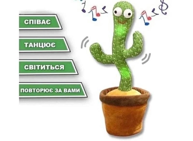 В наявності Популярна іграшка ! На USB зарядці! Хіт продаж! Увага💥 Ціна 325 грн! ♦Ціна 325 грн Танцюючий співаючий кактус у горщику з підсвічуванням і функцією повторення! _____________ Забавна мила іграшка має висоту 36 см, що додає ще більше ефект справжнього кактуса При одному вигляді- він вже викликає позитивні емоції і щасливу посмішку! Подарує незабутні емоції не лише дітям, а і дорослим! Симпатична весела плюшева іграшка кактус вміє танцювати, співати і повторювати за вами і вашим малюком будь які слова!!!(відтворює 120 англійських популярних пісень) -Заряджається як телефон і працює на акумуляторі!(шнур іде в комплекті) 10 шт 🚚 швидка відправка!