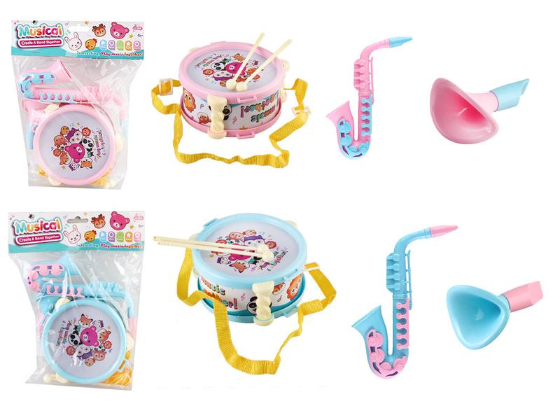 Музичні інструменти барабан/бубон, дудка, саксофон, у пакеті 21*28*6см Увага. Виробник залишає за собою право змінювати комплектацію, колірну гаму та характеристики товару без попереднього повідомлення. .
