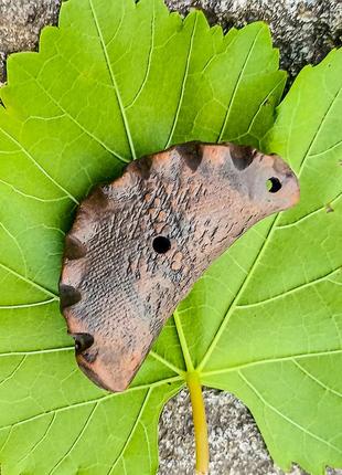 Свистулька Вареник малий - керамічний свищик з червоної глини, 2 ноти. Розвиваюча іграшка для вашої дитини - свистулька має лише один отвір, тож дитині буде нескладно начитись грати на ній елементарні мелодії. Є також отвір для мотузки, можна носити її на шиї або використовувати як прикрасу на новорічну ялинку. Вареники традиційно ототожнюють з Місяцем, бо вони схожі на нього за формою і використовувалися нашими пращурами як жертовна їжа, присвячена богині води. Українці вважали, що вареники мають магічне значення. Їх обов'язково готували у день, коли в господарстві селянина телилася корова або ягнилася вівця. Це повинно було забезпечити тварині міцне здоров'я та плодючість. Дівчата ворожать на варениках на Андрія, вареники як обов'язкову страву жінки несуть породіллі після пологів. Вважалося також, що процес замішування тіста, був символом процесу творення всесвіту, його структури, де саме жінка цей всесвіт творила, як мати та прародителька, символ продовження людського роду. Символом молодого Місяця та продовження роду є вареник на різдвяному столі. Під час жнив прадавні українці їли вареники як ритуальну страву. Вареник не випадково за формою нагадує місяць у пору його четвертої чверті — коли вирішувалася доля врожаю. Така їжа мала надати женцям «місячної» наснаги. Під час перепочинку виконувалися жниварські пісні, наприклад ця, записана на Київщині: Вже місяць спадає, А краю все немає… Ой, нумо, поспішімо, Жнива вчасно завершімо! Недалечко до межі, Варенички у діжі! Не барімося на лані — Варенички у сметані! Українські вареники десь так і лишилися на межі християнства та язичництва, бо в народі з ними, як уособленням нового всесвіту в мініатюрі дбайливо створеного жіночими руками, пов’язують духовне та матеріальне багатство. Саме тому символ місяця приносили подружки на другий день весілля молодій (щоб якомога швидше на світ з’явився первісток молодої сім’ї), з ними ж йшли на відвідини до породіллі, під час отелення чи ягніння домашньої худоби, вирішення долі врожаю чи жнив. Народна любов вигадливо вплела їх у християнство – суботнім сімейним ліпленням вареників з дозволом їсти у неділю після відвідування Божої служби в храмі та обов’язковим приготуванням на Святвечір. 80х45 мм, вага близько 50 г