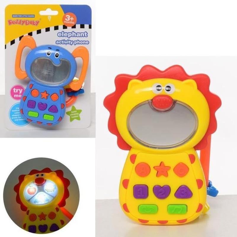 Знайомити дітей з різноманіттям навколишнього світу, з його звуками, кольорами, формами можна з самого маленького віку. Це сприятиме розвитку зорових, тактильних і слухових відчуттів, допомагає набути необхідного досвіду взаємодії з навколишнім світом і стимулює здібності до подальшого навчання. Найпростіше зробити це через розвиваючі брязкальця, пищалки або музичні іграшки. Телефон 0680AB представлений двома моделями, які зовнішнім виглядом нагадують лева і слона. Він оформлений яскраво, ніж неодмінно зверне на себе увагу дитини. Корпус зроблений в ергономічній округленої формі, без гострих кутів, для того щоб уникнути травм. Аудіоподдержка англійською мовою. Звучання приємне, не надто гучне, але чітке. Іграшка виконана з високоякісного, екологічно чистого пластика. Тип живлення: LR44-3шт