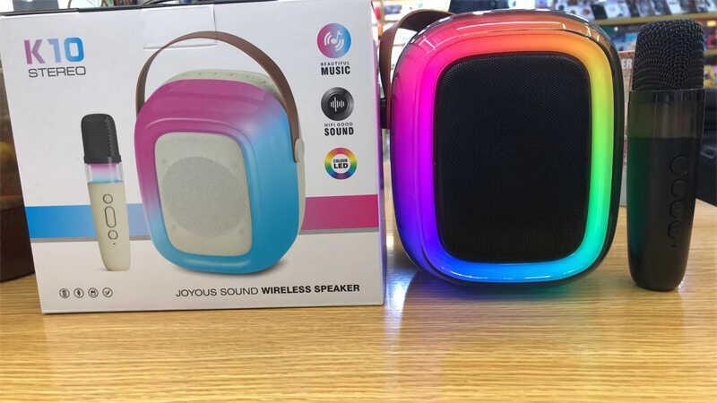Bluetooth під’єднання. Колонка та мікрофон працюють від вбудованого акумулятора. Розмір колонки: 13х11.5х16 см. Мікрофон та колонка підзаряджаються за допомогою кабелю type-c (додається). У мікрофона є декілька режимів зміни голосу. Під час роботи колонка та мікрофон підсвічуються. Є кнопки регуляції гучності та перемикання пісень. Кнопка зміни режимів. Ручка для зручного перенесення. Ємність батареї 2400 MAh. Підтримує TF-картку. * Характеристики та комплектація товару можуть змінюватися виробником без повідомлення