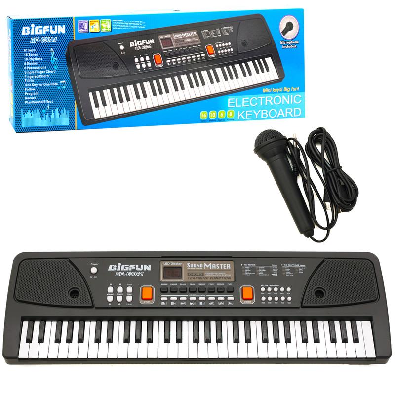 Іграшка "Синтезатор". 61 клавіша, мікрофон, можливість запису Demo. Живлення - батарейки. Паковання — коробка