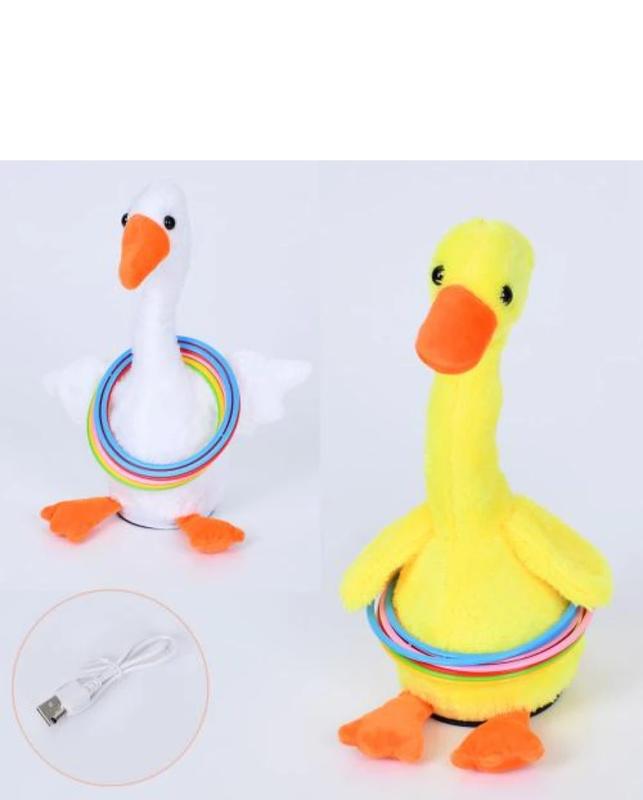 М'яка плюшева іграшка, гусак 30 см, акум, USB зарядне, музика, танцює, кільця