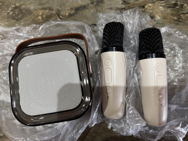 Комплект: колонка і 2 мікрофони Нове , відкрила щоб провірити чи все працює Чудовий подарунок для дітей та дорослих , підключається по блютузу , мікрофони 2 чудово працюють як і колонка , можна міняти голоса , є інструкція та шнур для зарядки , все в комплекті Колонка світиться