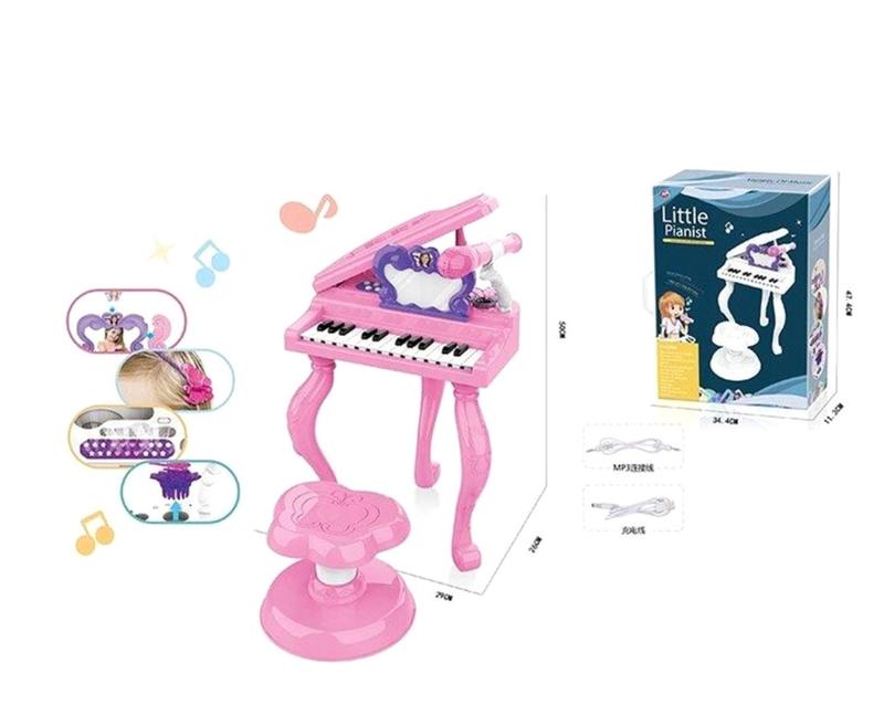 Піаніно Максік - чудова іграшка, яка сприяє розвитку музичного слуху у дітей. Цей багатофункціональний інструмент видає приємні звуки та стимулює розвиток навичок, які сприяють гармонійному росту дитини. Граючи на піаніно, ваш малюк вчиться слухати, розпізнавати ноти та покращує координацію рук і очей. Інструмент створено з думкою про наймолодших. Клавіші створені для маленьких ручок, тому легше навчитися грати та грати улюблені мелодії. Крім того, піаніно підтримує відтворення MP3-рингтонів. що збагачує задоволення. У набір входить: - 25-клавішний синтезатор, створений спеціально для дітей. - Мікрофон зі зручною підставкою. - Зручне крісло. - Дзеркало з вбудованою гребінцем. - MP3 вхід. Доступні кольори білий і рожевий, а колір іграшки надсилається випадковим чином. Якщо ви бажаєте певний колір, вкажіть його в примітках до замовлення, і ми постараємося врахувати ваші побажання. Піаніно з мікрофоном для дітей також має: - Пюпітр, який виконує роль дзеркала та сейфа. - Можливість роботи від мережі або від акумуляторів (USB зарядка в комплекті). - Регульована гучність для більш комфортного використання. - Вбудовані мелодії дзвінка та підключення MP3. - Красива подарункова упаковка. Переваги іграшки: - Розвиває музичні інтереси та почуття ритму. - Стимулює творче мислення, художні здібності та уяву. - Сприяє розвитку дрібної моторики та координації рухів. - Мікрофон дозволяє поєднувати спів із грою на піаніно. Технічні дані: - Розмір упаковки: 47,5 х 34 х 11 см. - Працює від 3 батарейок АА (1,5 В). - На корпусі піаніно є кнопка ввімкнення/вимкнення. Додаткові можливості: - Багатофункціональність: піаніно поєднує в собі функції музичного інструменту, дзеркала та ігрового центру. - Простота використання: регульована гучність дозволяє адаптувати звук до будь-якого середовища. - Безпека: виріб виготовлено з високоякісних матеріалів, без гострих країв. - Розвиток: підтримує загальний розвиток дитини, включаючи музичні, творчі та соціальні навички. Подаруйте своїй дитині захоплюючу музичну подорож!