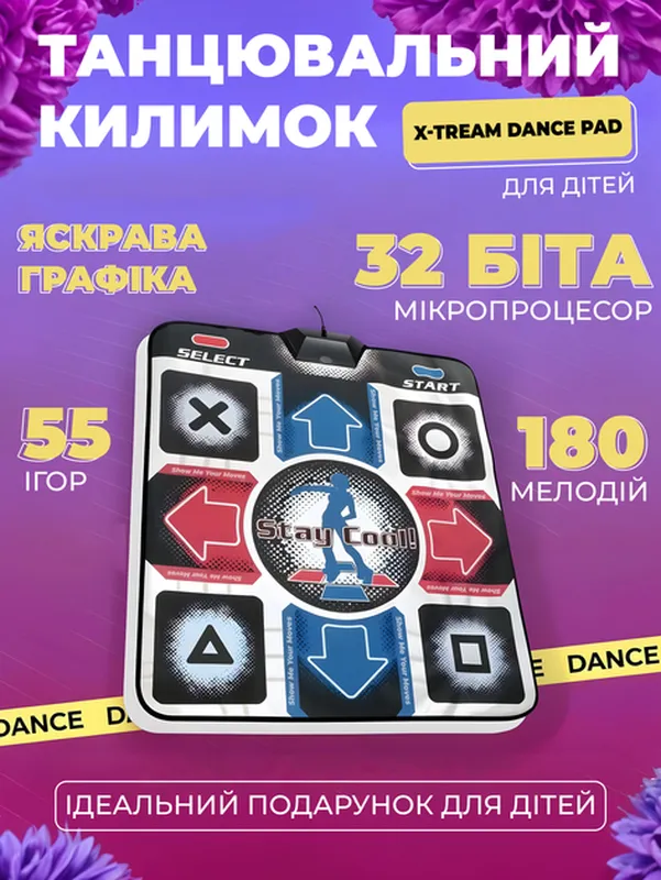 Превратите свою комнату в настоящий танцевальный зал с ***** ***! Подключите коврик к ПК (*******), установите игру, запустите ее, нажмите “*****” и двигайтесь в ритме музыки. Благодаря интерактивному управлению каждый ваш шаг синхронизируется с экранными инструкциями, а если подключить два коврика, можно играть в кооперативном режиме! Коврик изготовлен из мягкого и прочного материала, что обеспечивает комфортное использование. В основе – противоударное покрытие, которое защищает суставы от перегрузки. Важно! Игра поддерживает только английский язык, другие языки недоступны. Преимущества: ✅ Удобный и прочный материал – комфорт для ног и суставов ✅ Простота использования – установите игру, подключите коврик, нажмите “*****” и танцуйте ✅ Интерактивное управление – каждое движение синхронизируется с игрой ✅ Поддержка кооперативного режима – возможность подключения 2 ковриков ✅ Совместимость с ******* – работает только через ПК Технические характеристики: • Размеры коврика: 80×90 см • Длина кабеля: 170 см • Питание: 9 В • Подключение: *** • Вес: 600 г Комплектация: • Танцевальный коврик ***** *** • Диск с игрой (*******) • Инструкция 📌 Если у вас нет дисковода, мы можем отправить установочный файл через ******** или по почте.