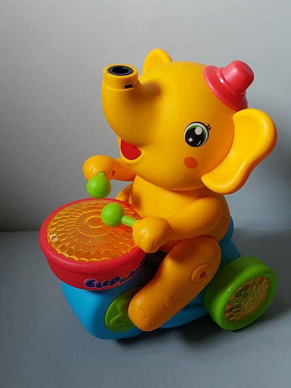 Розважає : Милий мультяшний вигляд слоника сподобається з першого погляду. Цікаво дивитися на те, як інтерактивна іграшка їздить, б'є по цимбалах. Із музикальними ти світловими ефектами : Виріб яскраво світить у темряві за допомогою світлодіодів та грає веселі пісні. За потребою ефекти легко вимикаються однією кнопкою Розвиває : Музичний слоник покращує дрібну моторику, координацію рук і очей. Він також допомагає розвинути уяву та змушує малюка рухатися, пізнаючи світ Безпечна : Яскрава іграшка підійде для дитини від 6 місяців. Вона виготовлена з нетоксичного пластику та не має гострих кутів Идеальное состояние Без мячика С батарейками