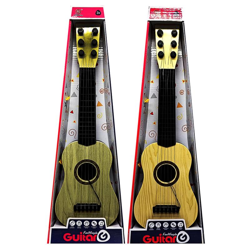 Гитара детская. Особенности: - инструмент оснащен шестью струнами; - игрушка отлично подойдет для первого знакомства с нотами и их звучанием; - есть возможность регулировки струн, чтобы звук был более точным и чистым; - высококачественные струны не деформируются даже при длительной эксплуатации, к тому же они достаточно эластичны, так что не повредят пальцы. - длина гитары – 43 см.
