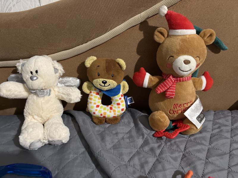 Стан хороший. Ведмідь музикальний новорічний. Маленький з синьою хусткою торохтить, якщо потрясти. Білий просто ведмедик. Ціни від 50 грн. Німеччина
