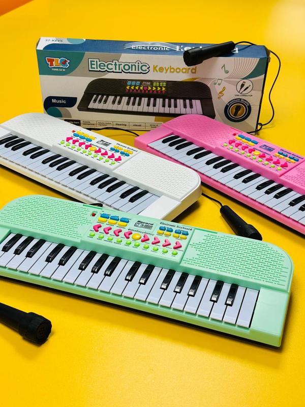 Синтезатор с микрофоном Артикул: 2250 Описание: 3 цвета 37 клавиш демо возможность записи музыки ▪️микрофон, в который можно петь работает от сети и от батареек Размер: длина 41.5 см, ширина 15.5 см