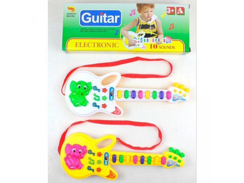 Дитяча музична гітара. Два режими роботи. Підсвічування. Довжина гітари 30 см Працює від батарейок 2 шт АА,в комплект не входять. Пакування коробка 30х12х4 см