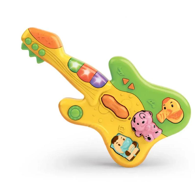 Музична іграшка Baby Team Гітара - прекрасний подарунок для дитини. Особливості: музична іграшка зі світловим, звуковими ефектами та мелодіями; розвиває координацію рухів, концентрацію, увагу, дрібну моторику, слух і колірне сприйняття; має 4 режими роботи, регулятор гучності, перемикач режимів; виготовлений із високоякісних і безпечних матеріалів, а також не містять шкідливих речовин. Елементи живлення: 3 батарейки АА (не входять в комплект).