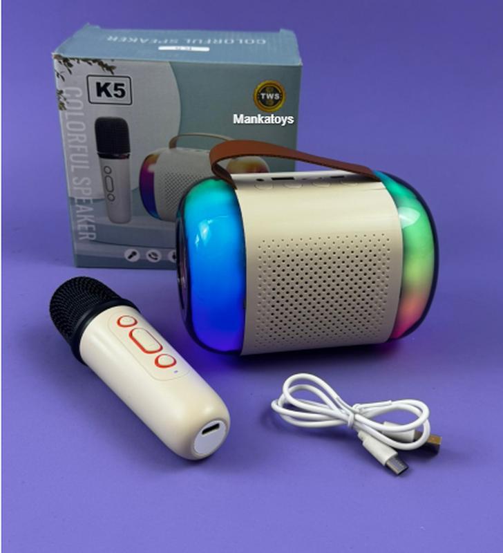 Караоке колонка k5 з мікрофоном бежевого кремового кольору c 72105 підсвічування, слот для...