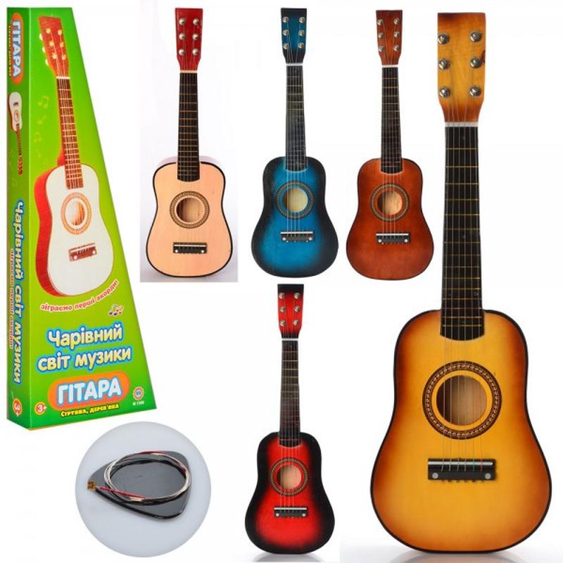 Іграшкова гітара M 1369 дерев., струни 6 шт., запасна струна, медіатор, 4 кольори, 59-21-7 см.