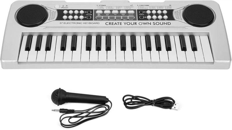 Новий. Електронний синтезатор містить 37 клавіш, а також обладнаний додатковими кнопками, що створюють різні звукові ефекти. Музичний інструмент укомплектований мікрофоном, щоб юні таланти мали можливість повною мірою відчути себе справжніми зірками уявної сцени. 37 клавіш Регулювання гучності Функція записування та відтворення 8 тонів 8 ритмів 4 ударні 6 демомелодій MP3 Розмір інструмента: 43 х 16 см