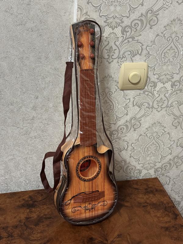 Гітара з медітатором .Дитячий музичний інструмент зроблений з міцного і якісного пластика і має 6 струн, які можна "налаштувати" як у справжньої гітари. Інструмент після гри відмінно поміщається в поліетиленовий чохол з ручкою, тому його зручно брати з собою на вулицю. Розмір гітари: 54 х 18 х 5,5 см