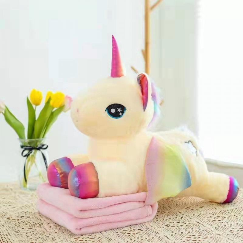 Описание Этот трансформер 3-в-1 в собранном состоянии представляет собой милую мягкую игрушку в виде, единорога. Однако стоит отстегнуть застежку, и появляется теплый плед. Так же остается мягкая игрушка и удобная подушка. Размер игрушки: длина-60см высота-37см ширина-30см Размер пледа 100x150cm Плед розового цвета ХАРАКТЕРИСТИКИ Вид: Игрушка-плед Количество предметов, шт: 2 Материал верха: Микрофибра Особенности: Плед-игрушка подушка 3в1 Пол ребенка: Девочка Страна-производитель товара: Китай Тематика: Животное Цвет: Желтый