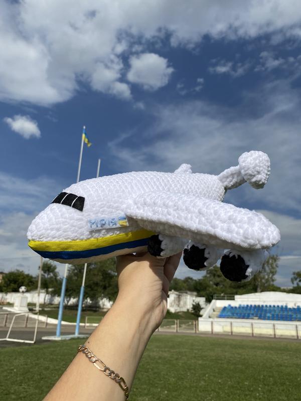 Довжина 34, ширина з крилами 39. Зв‘язаний з плюшевої пряжі