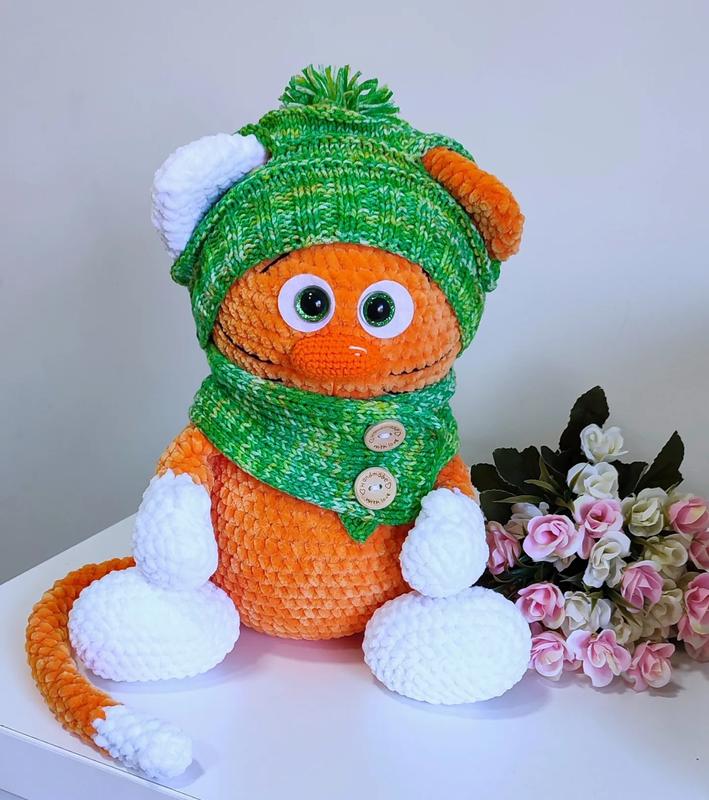 МОЖЕ ВІДРІЗНЯТИСЯ КОЛІР ШАПКИ І ШАРФУ!!!!Котик,м'яка іграшка ручної роботи,всі кріплення безпечні, Гіпоалергенні матеріали, Зріст в сидячому стані 26 см, наповнювач холофайбер