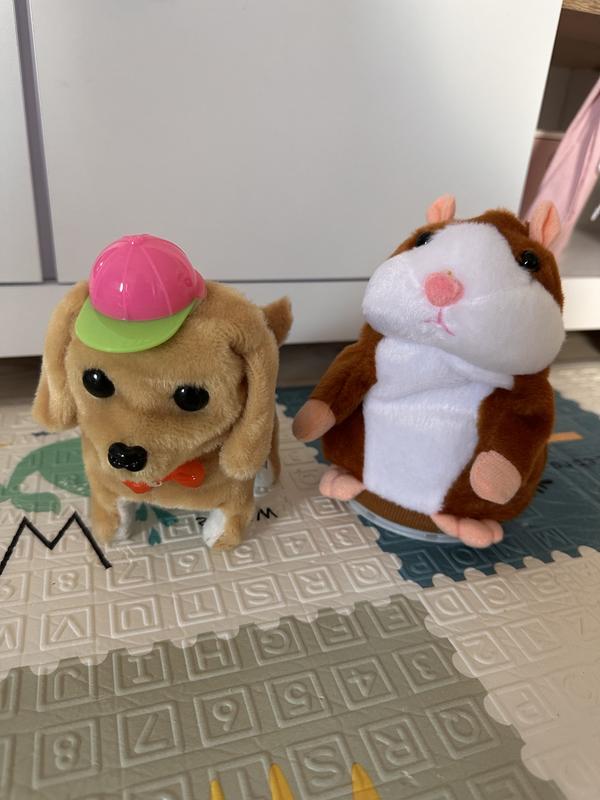 Собачка, ходить і гавкає, хомячок повторює за дитиною слова