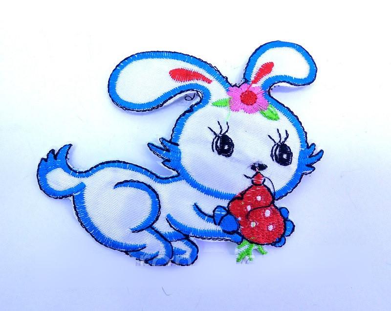 Аплікація зайчик білий сголубым 11*9 см термоапликация