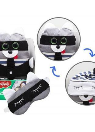 Игрушка-сплюшка "Енот". Милая плюшевая зверушка в забавном костюмчике порадует вашего малыша. Игрушка приятная на ощупь. С большими, яркими глазками, а во время сна, на игрушку можно одевать маску для сна (пришита к игрушке, ее можно поднимать или опускать на глаза). В наборе со сплюшей есть маска для сна с изображением мордочки животного. Выполнена из качественных и безопасных материалов._ Бренд: RoterKafer Упаковка: Коробка Цвет: Разноцветный Вес в упаковке: 580 г Габариты в упаковке: 14.5 x 26 x 33.5 см Cтрана производитель: Китай Материал: Комбинированный Комплектация: Игрушка, маска для сна