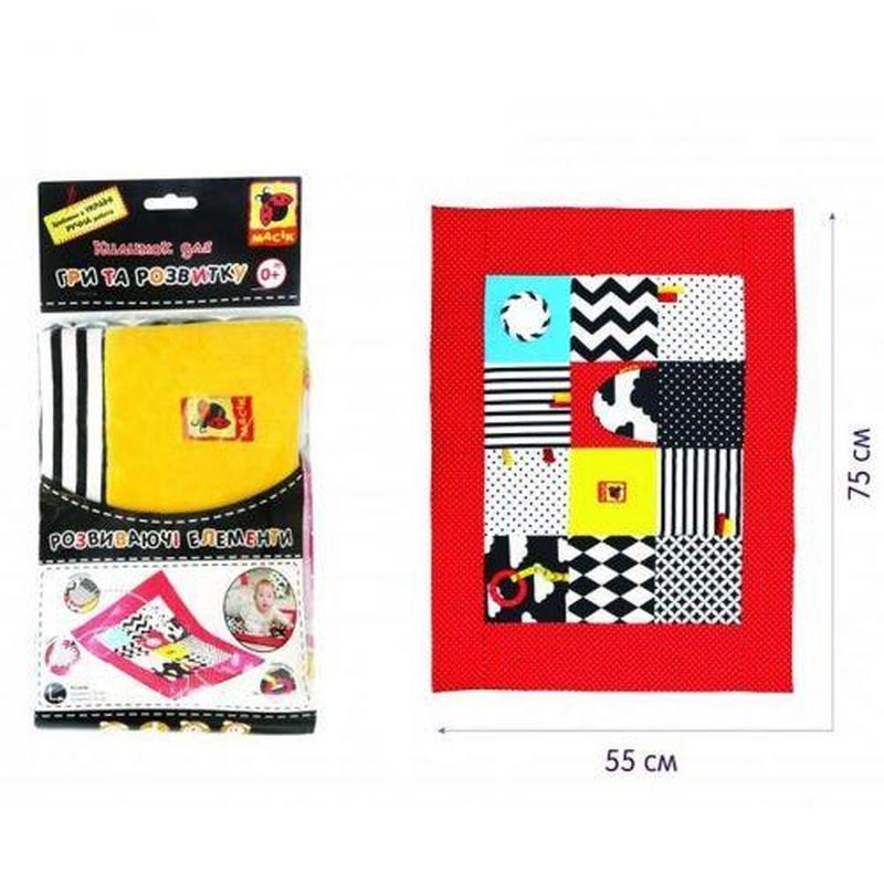 М'яка розвивальна іграшка "Коврик" буде цікавим подарунком малюкові. Підходить для дітей із перших днів життя. Верхній шар килимка — 100% бавовна, нижній шар — синтетична тканина, наповнювач — ізолон, холофайбер. На килимку є різні нашивки. Розмір килимка — 69х51 см. Виготовлений з якісних і безпечних матеріалів. _