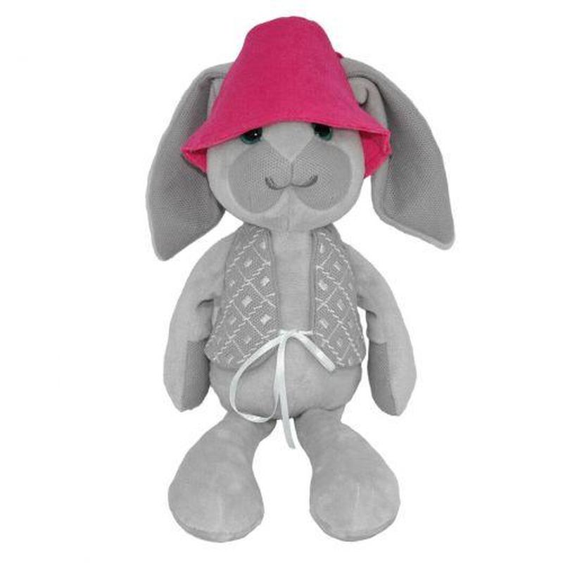 Мила іграшка у вигляді пухнастого зайчика з мʼякою шорсткою та довгими вушками. Очі пластикові. Дуже мʼяка і приємна на дотик. Розмір іграшки: 34х25х13 см. Виготовлено в Україні.