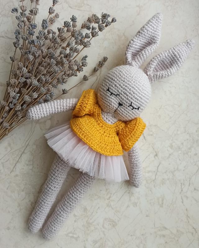 Висота іграшки 31 см разом із вушками. Одяг знімається.