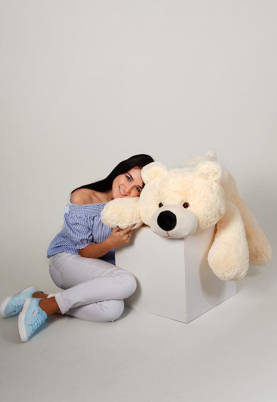 М'яка плюшева іграшка - Ведмідь "Умка" різних кольорів висота - 85 і 120 см матеріал - плюш Наши преимущества - Гарантия качества - Доставка 1-3 дня - Отправка без предоплаты - Оплата при отриманні або на мапу М'яка плюшева іграшка - Ведмідь "Умка" Цей ведмедик стане відмінним помічником у вираженні Ваших почуттів, а також чудовим подарунком на будь-яку подію. Особенность этой модели в том, что она не сидячая а лежачая. Ее чаще заказывают для детей, но, она также отлично подходит на подарок для взрослых. Цвета: белый, коричневый, кремовый, розовый. *Производитель-Украина. *Высокое качество пошива. *Верхний материал - высококачественный густой плюш, без посторонний запахов и приятный на ощупь (страна производитель - Беларусь). *Наполнитель силиконовое волокно, не вызывает аллергических реакций (страна производитель - Украина). *Фурнитура изготовлена из безопасной качественной пластмассы. Как правильно измерять мишек? Многие уверены в том, что плюшевые мишки измеряются точно так же, как люди - по росту, но это не совсем верно, вот почему: 1. У плюшевого медведя параметр высоты - размер, а не рост, как у человека. 2. Плюшевые мишки измеряются не от макушки, как люди, а от кончиков ушей до кончика хвоста и от хвоста до пяток ног (задних лапок).