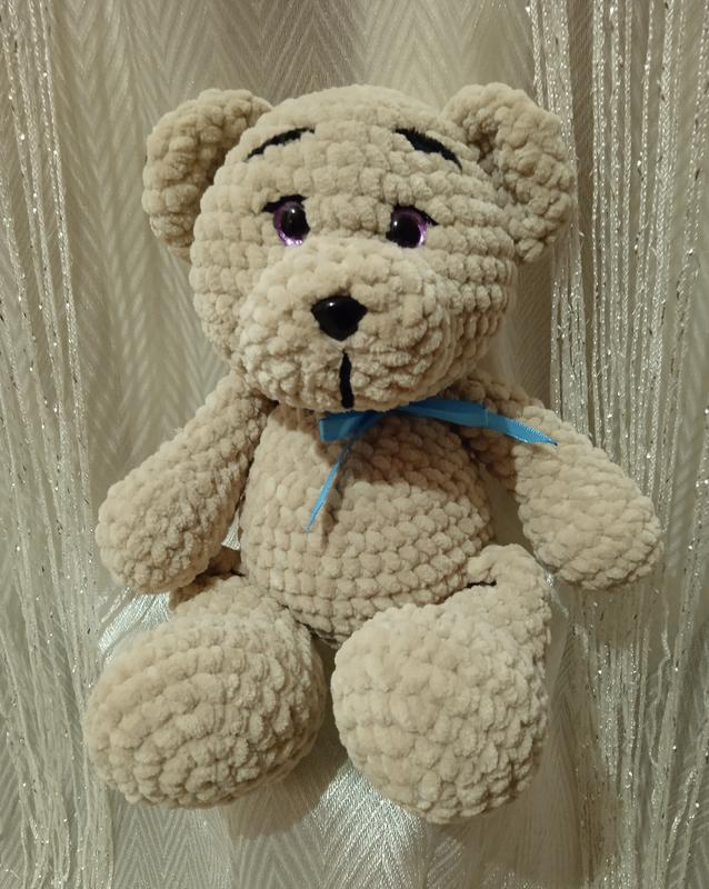 ведмедик ручної роботи з плюшевої пряжі стане чудовим подарунком для малечі, висота 26 см.