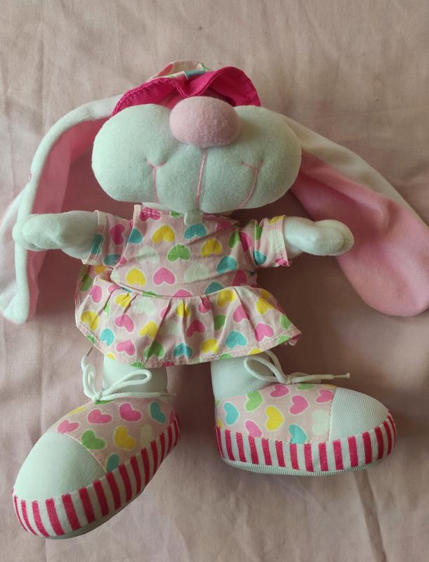 3 мягкие игрушки, лежат без дела. Единорог и кролик размер +/- 30см, девочка немного меньше.