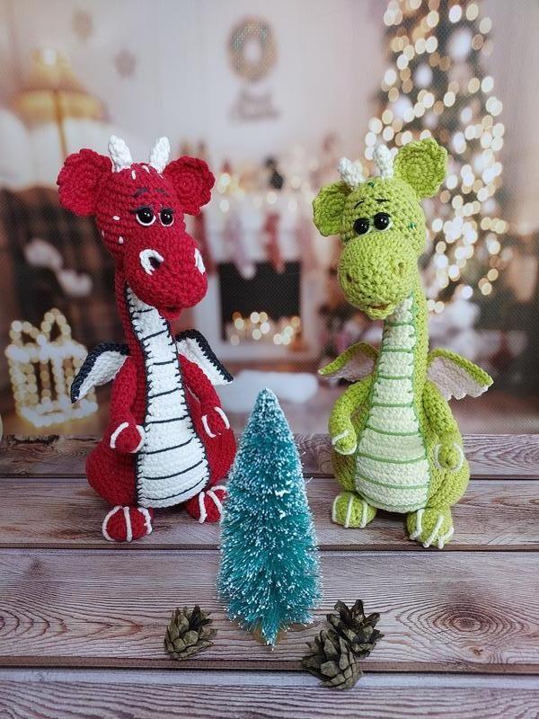 Милые и совсем не страшные дракончики - символ 2024 года. Выполнены из качественной гипоалергенной пряжи, рост 24 см, шея и голова на проволочном каркасе (можно менять положение головы и изогнутость шеи). Возможно изготовление в любом цвете. Цена указана за 1 шт.