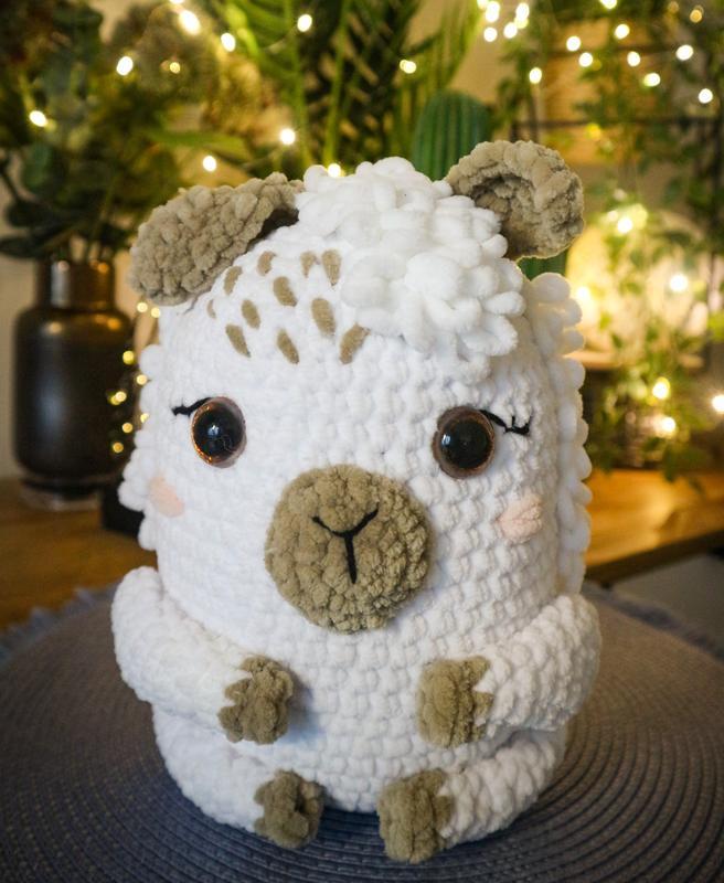 Стать: Унісекс Тип іграшки: Тварини Матеріал: Інший матеріал М'яка іграшка 'Альпака' зв'язана гачком із плюшевої пряжі 100% поліестер. Очі пластикові на безпечному кріпленні. Наповнювач холофайбер Висота - 20 см Ширина - 14 см