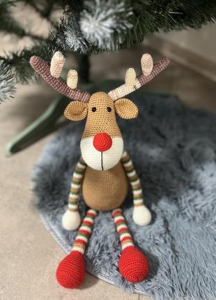 Іграшка олень Ральф ручної роботи, це класний подарунок як друзям, так і рідним. Він стане невід‘ємним членом родини на будь-якому святі, це не обов’язково має бути зимове свято. Велика м‘яка іграшка - 50 см (з ніжками і ріжками) Використовую лише гіпоалергенні матеріали, які не шкодять діткам. Очі на безпечному кріпленні, які неможливо відірвати. Усі іграшки створюються на замовлення, подбайте про це заздалегідь. SOUL - створено з душею