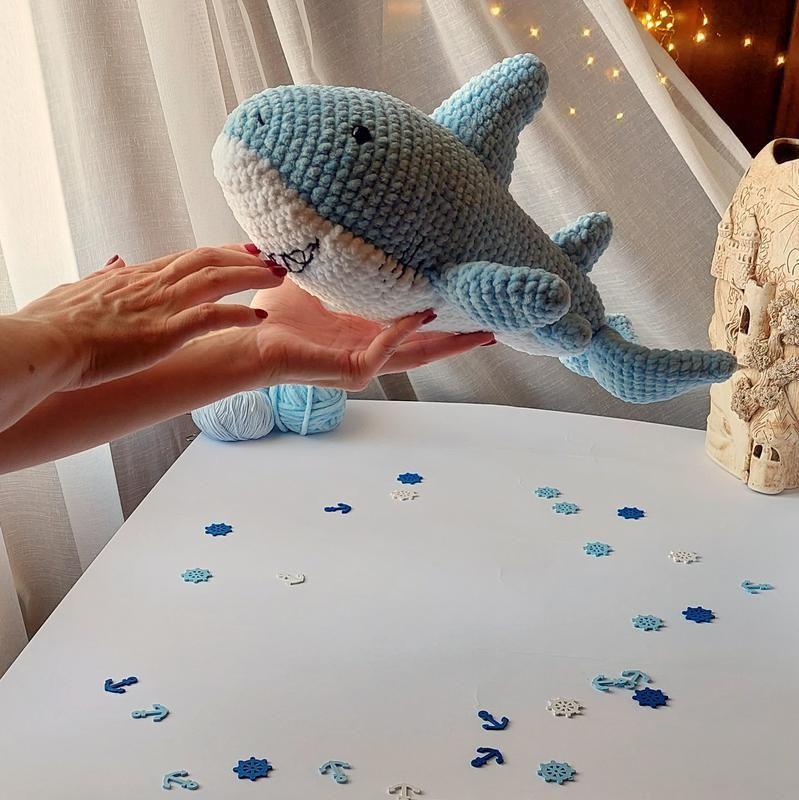 Іграшка стане чудовим подарунком для любителів морів-океанів і не тільки. Так, так - це та сама акула :). Іграшка зв'язана з неймовірно м'якою плюшевої пряжі, наповнювач холлофайбер. Всі деталі міцно пришиті. Довжина іграшки близько 37 см. Іграшки в наявності немає, проте можливе виготовлення під замовлення. Термін до 7 днів Кольори можемо підібрати індивідуально.