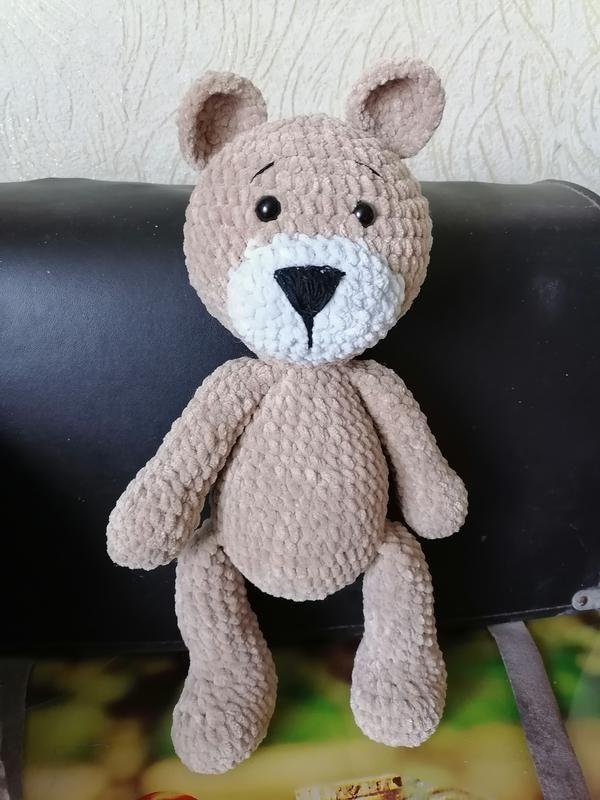 Мішаня, пов'язаний гачком з плюшевою пряжі, очі на безпечному кріпленні