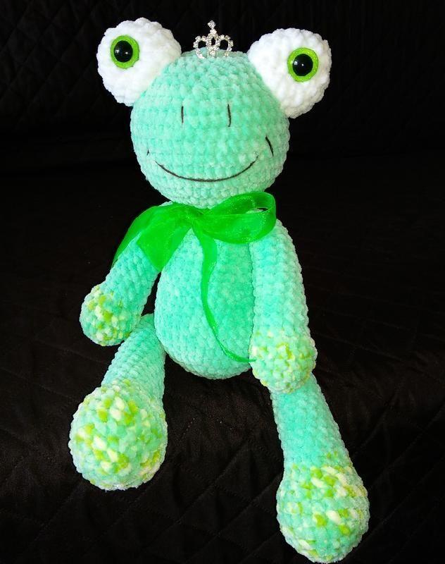 Жаба з плюшевою пряжі,наповнювач холлофайбер. Висота іграшки 37 см Товар виготовляється на замовлення