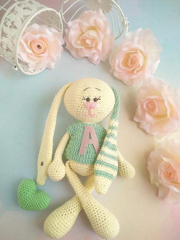 Персональна іграшка для Вашої дитини!👍💯 Гарний подарунок приємний навіть новонародженій дитині.👍👶 Ваш малюк буде радий новому зайчику з довгими вушками,на грудях я пришиваю першу букву імені дитини. Персональний зайчик-це друг,який завжди поруч з дитиною.👶💖🤗 Добрий,м'який викликає бажання обіймати і гратися з ним. Матеріал:нитка 45%акрил,55%бавовна, наповнення холофайбер ☘️, очі на безпечному кріпленні. Догляд -ручне або машинне прання в теплій воді з рідким засобом. Добре висушити. Ріст 27см. ЩАСТЯ ПОРУЧ 💖💖💖 Всі мої іграшки вив'язані в приміщенні вільному від тютюнового диму 💚💚💚 Дякую, що відвідали мій магазин. Додаткові характеристики: Стать: Для дівчаток Стать: Для хлопчиків Вид: Зайчик Товар виготовляється на замовлення