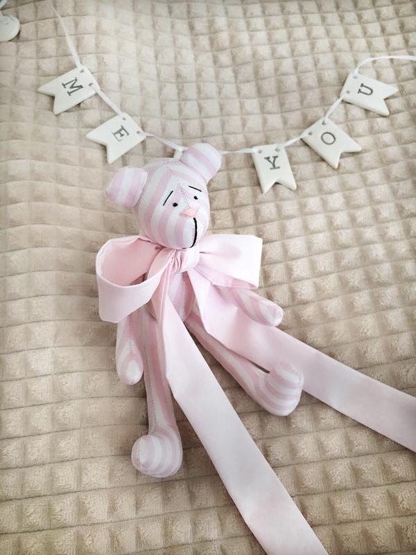 Мишка розовый в полоску с бантом подарок дочке девушке подруге игрушка