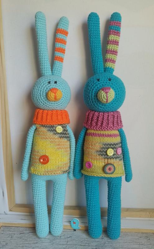 Зайчик связан со мной из качественных турецких нитей хлопок с акрилом, наполнитель холлофайбер, свитерик снимается. Рост 41 см Сделайте детскую убо свою комнату ярче!)